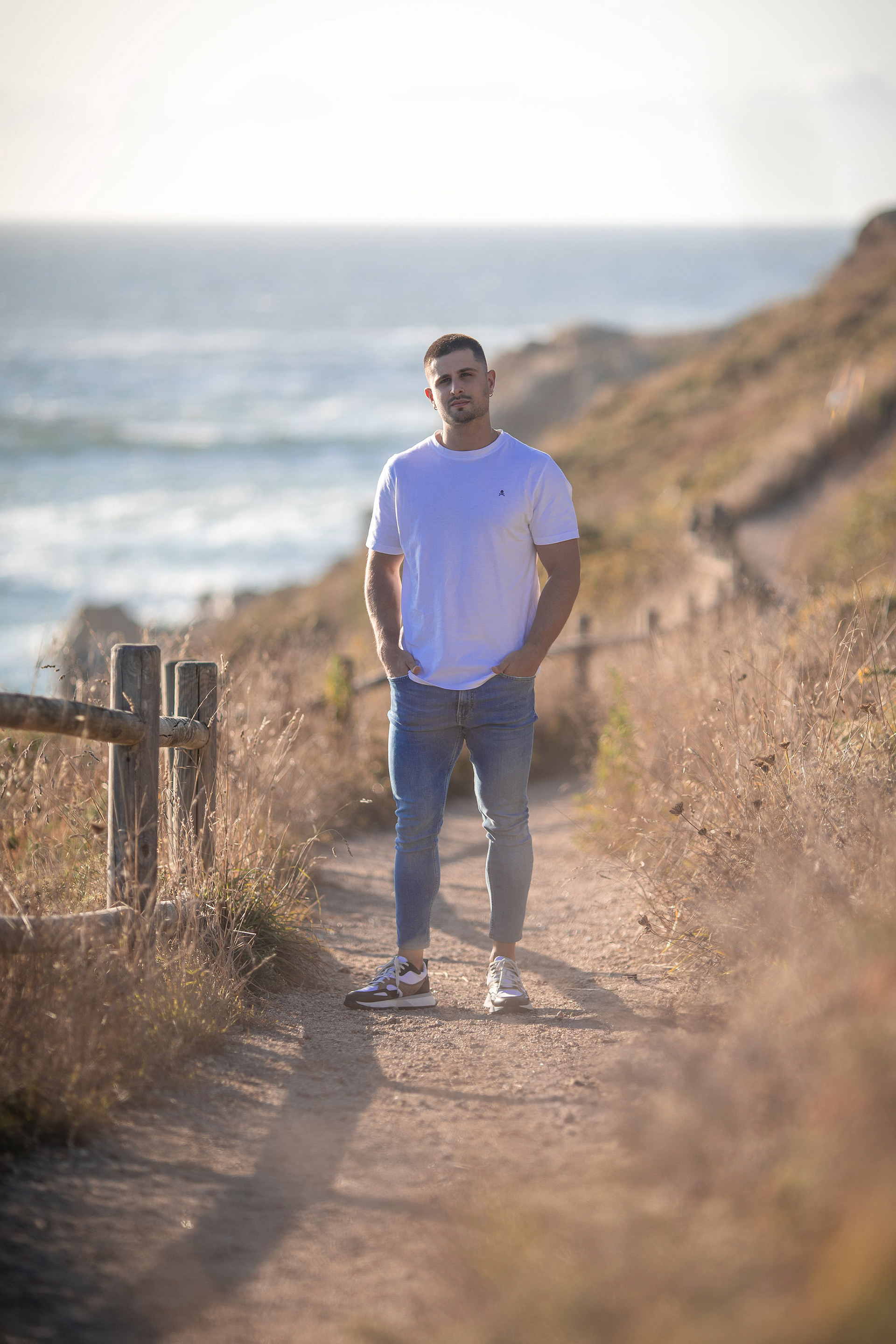 Cada fotografía refleja la conexión entre modelo y entorno, una mezcla de elegancia, energía y sensibilidad. En Hugo, la cámara encontró lo que la luz buscaba: autenticidad, presencia y el eco sereno del mar al caer la tarde.