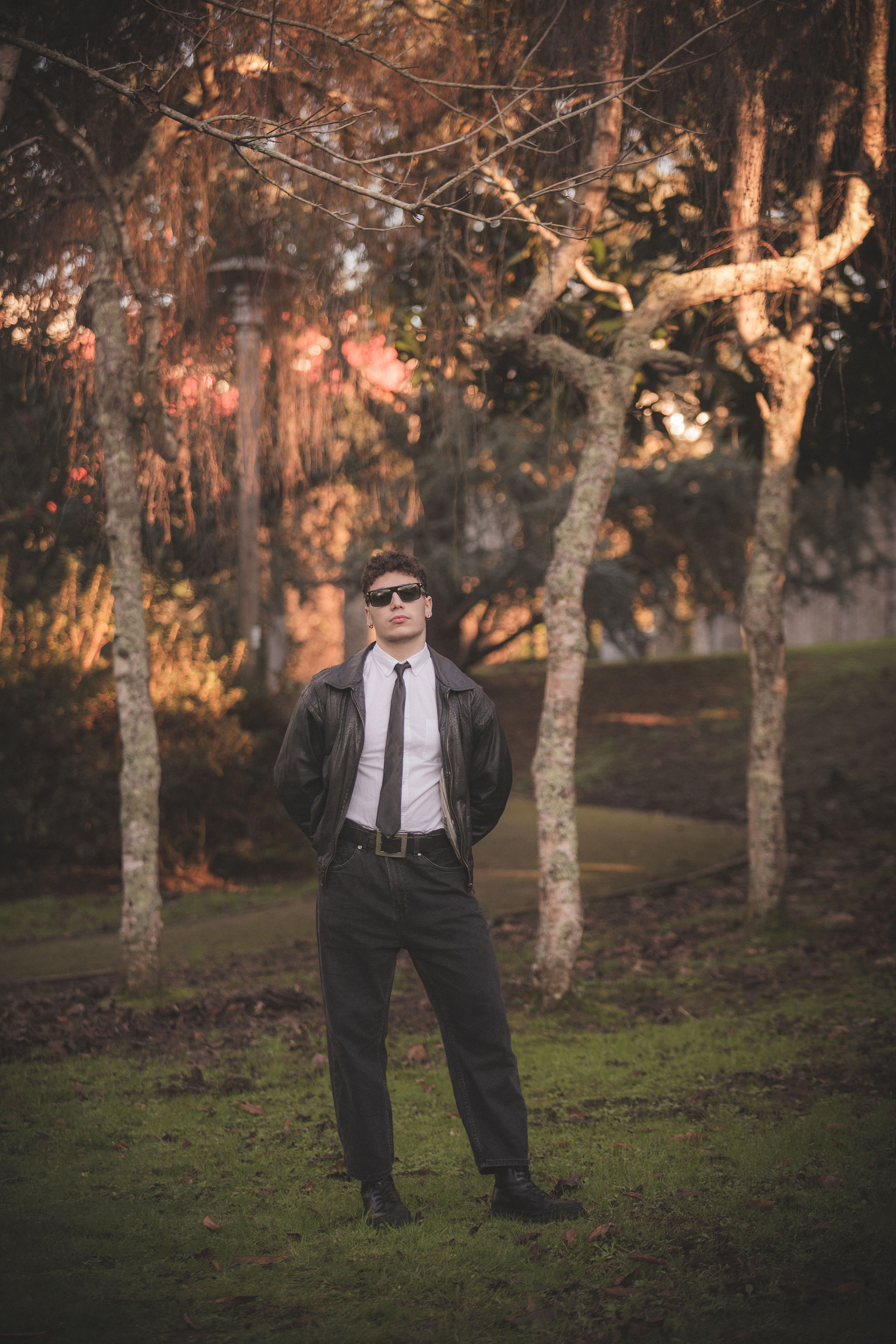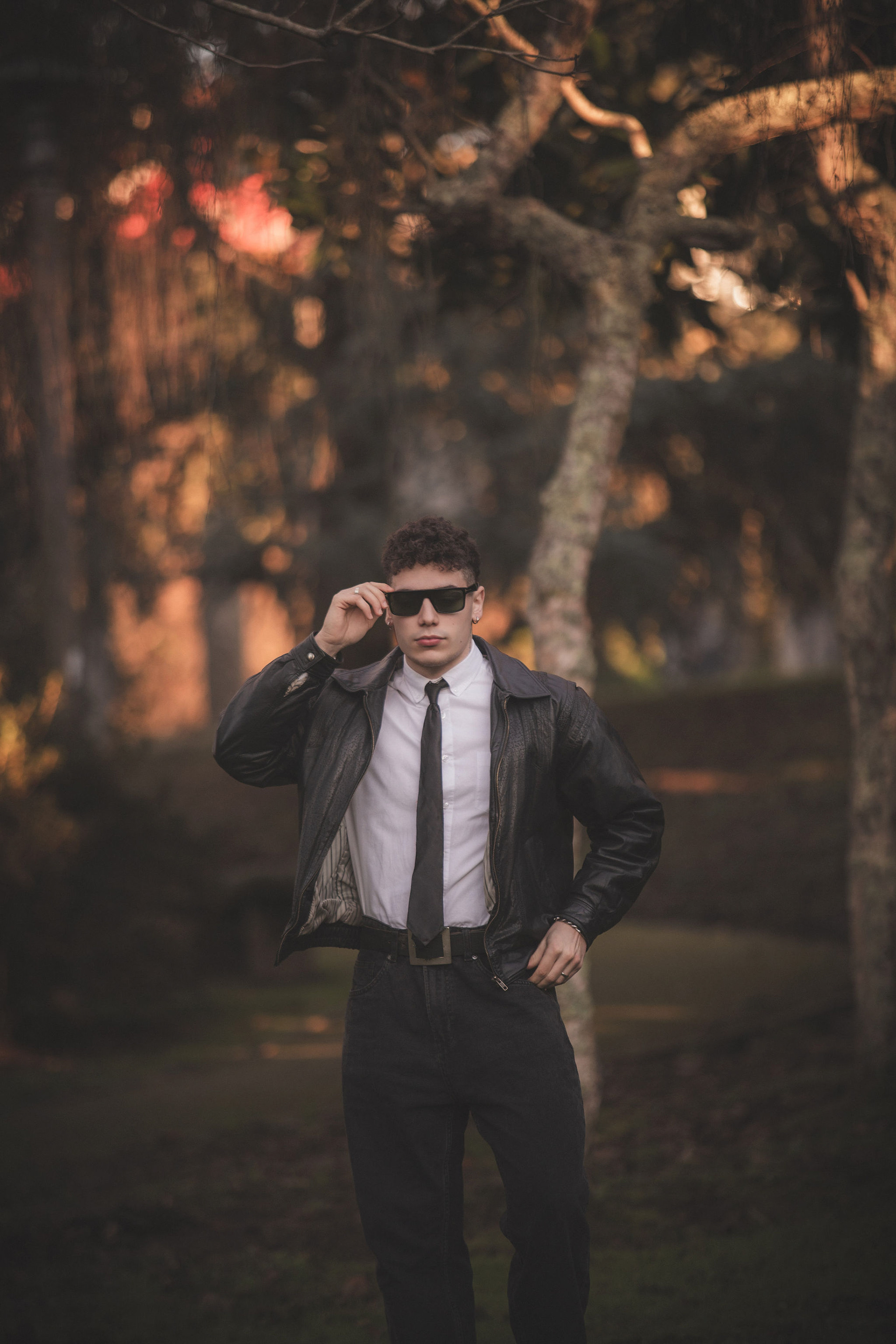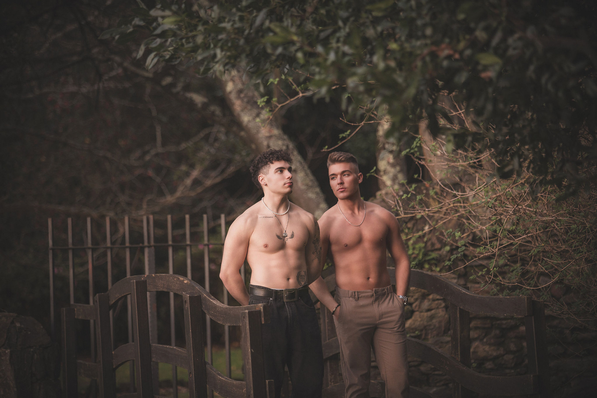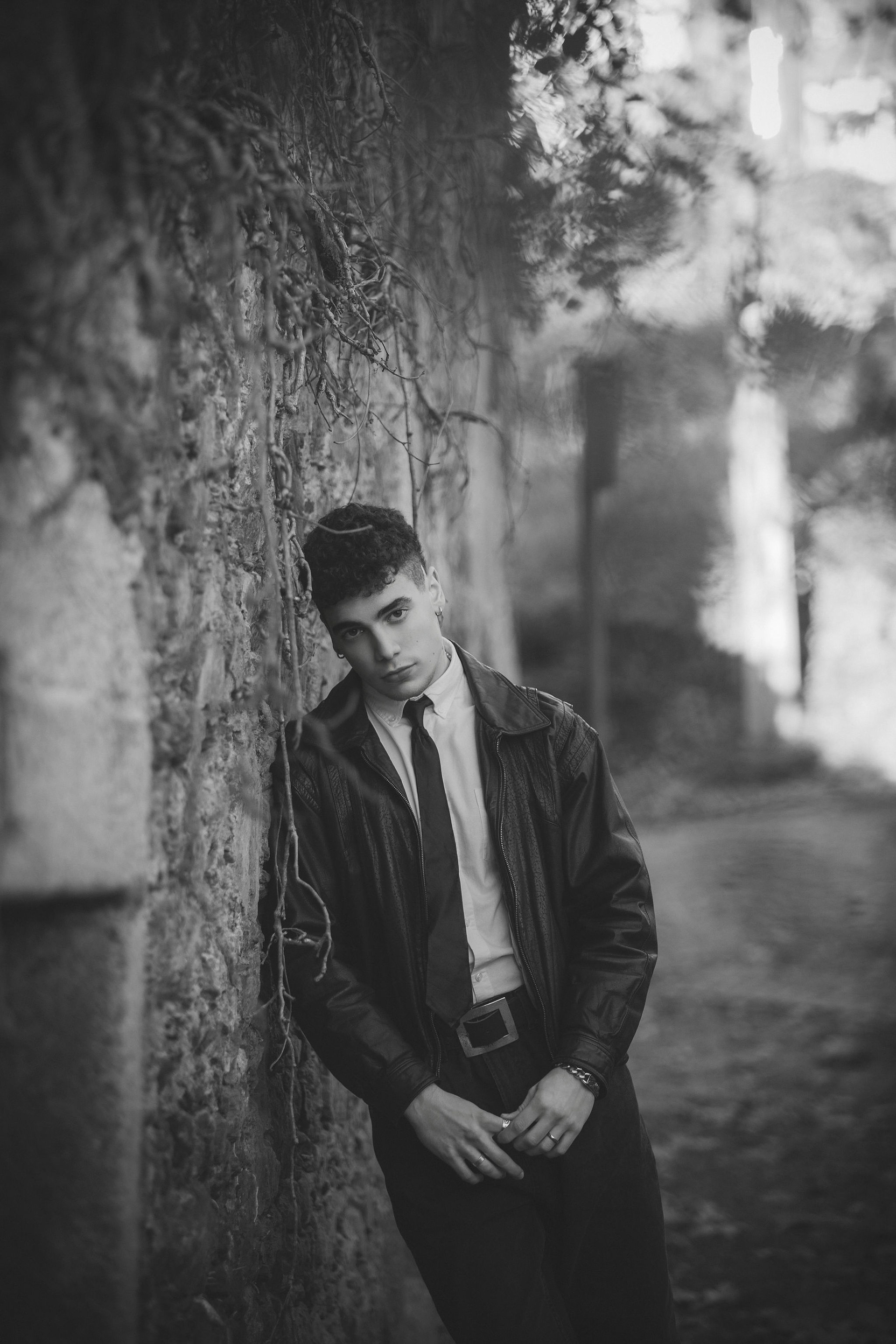 La sesión con Ismael en el parque de Montrove, en Oleiros, fue un homenaje a la paleta dorada y cobriza del otoño. El escenario era un lienzo vivo: una alfombra de hojas crujientes en tonos de ámbar, carmesí y ocre cubría los senderos, mientras la luz tamizada por las ramas de los árboles creaba un ambiente íntimo y mágico. Ismael, con su figura esbelta y juvenil, se movía con una soltura natural, vistiendo una combinación estudiada de clásico y moderno. El icónico abrigo de piel, lanzado con desenfado sobre sus hombros, contrastaba con piezas de corte actual, creando una imagen de una elegancia atemporal que resaltaba su físico sin necesidad de mostrarlo explícitamente.