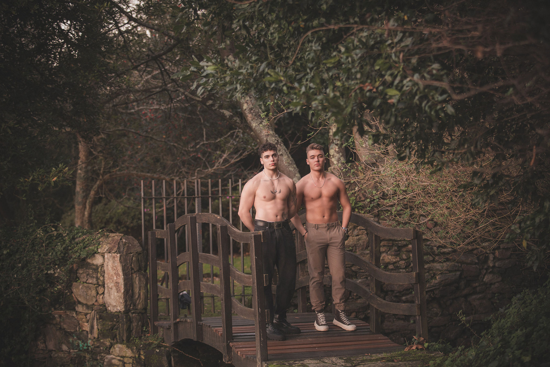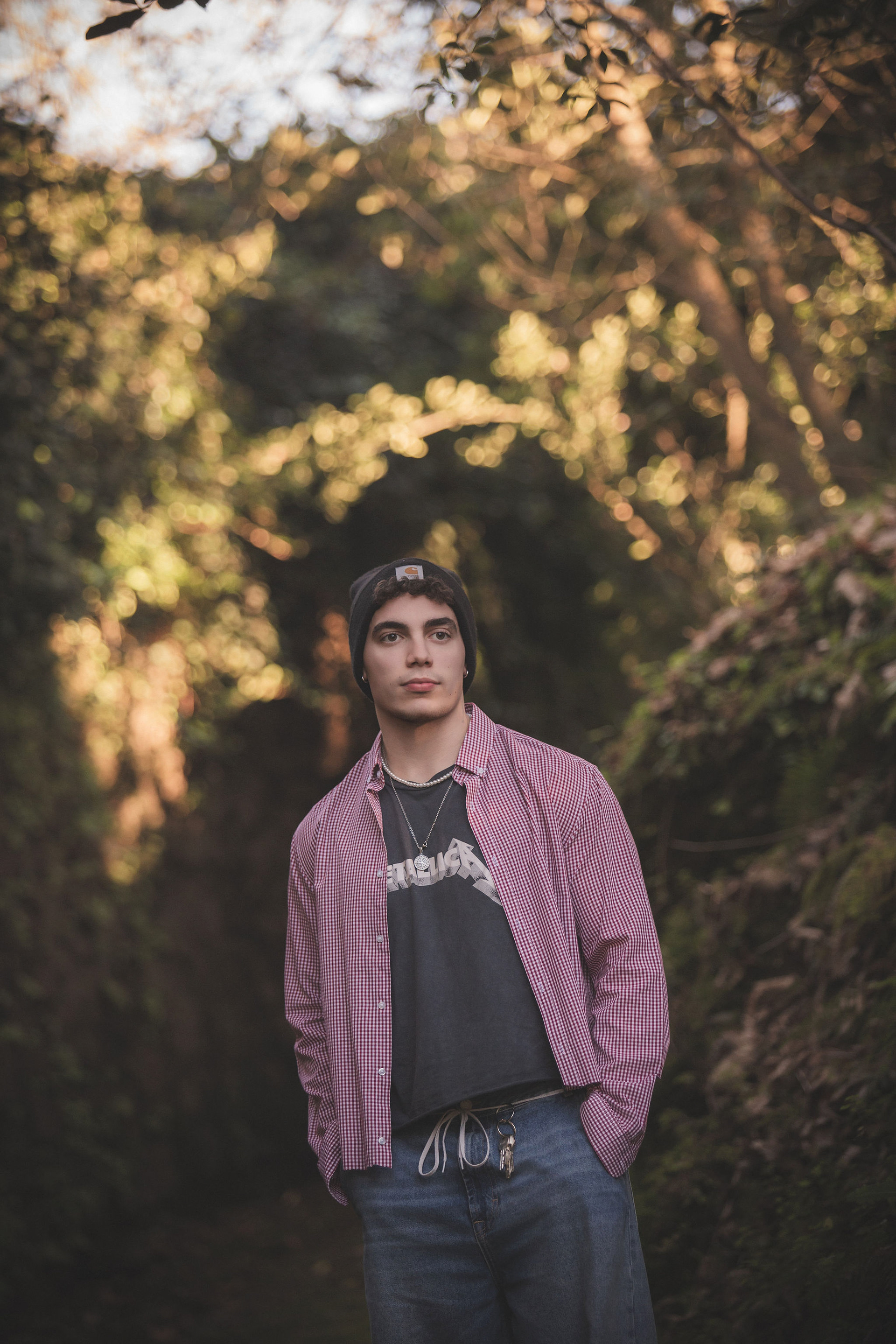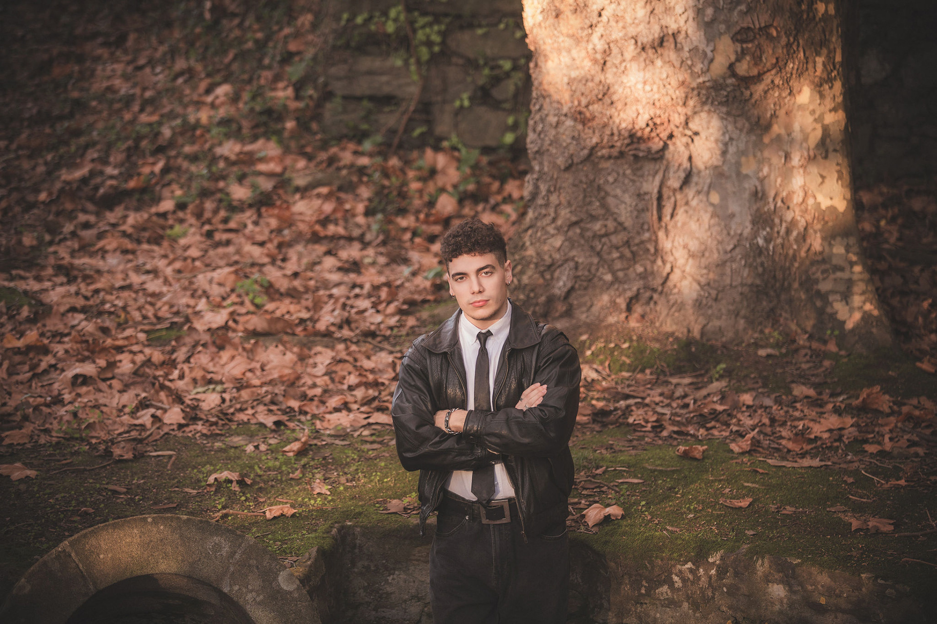 Fue una sesión marcada por la risa y la complicidad. Lejos de las poses rígidas, buscamos capturar la cercanía y la espontaneidad de Ismael. Corríamos entre los árboles, lanzábamos hojas al aire y aprovechábamos cada rincón del parque Ibarrola. El contraste era fundamental: la textura rústica de un tronco contra la fina lana de su jersey, la vitalidad de su juventud contra la madurez serena del paisaje. El resultado fue una galería de imágenes que respiraban belleza auténtica, donde la elegancia clásica y la diversión moderna se entrelazaban tan armoniosamente como los colores del otoño gallego.