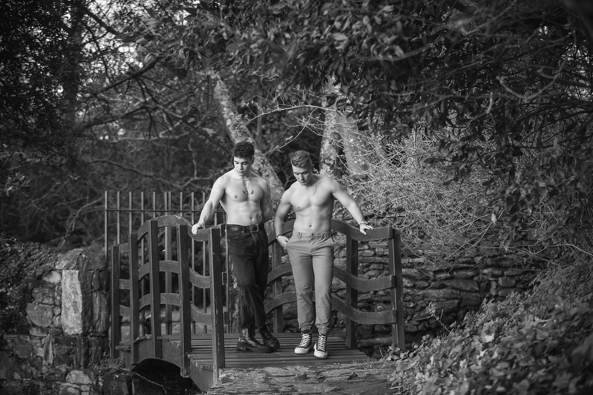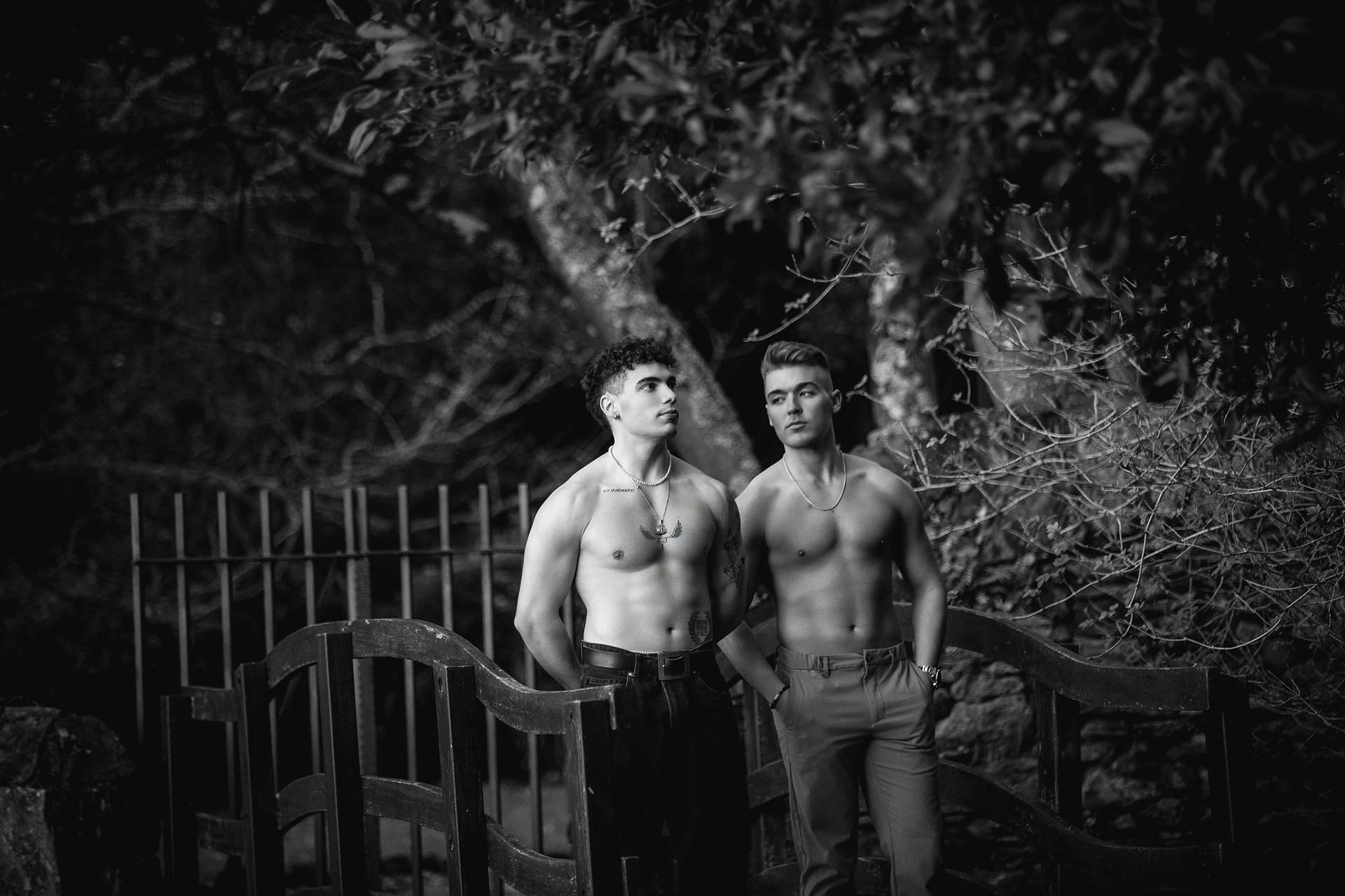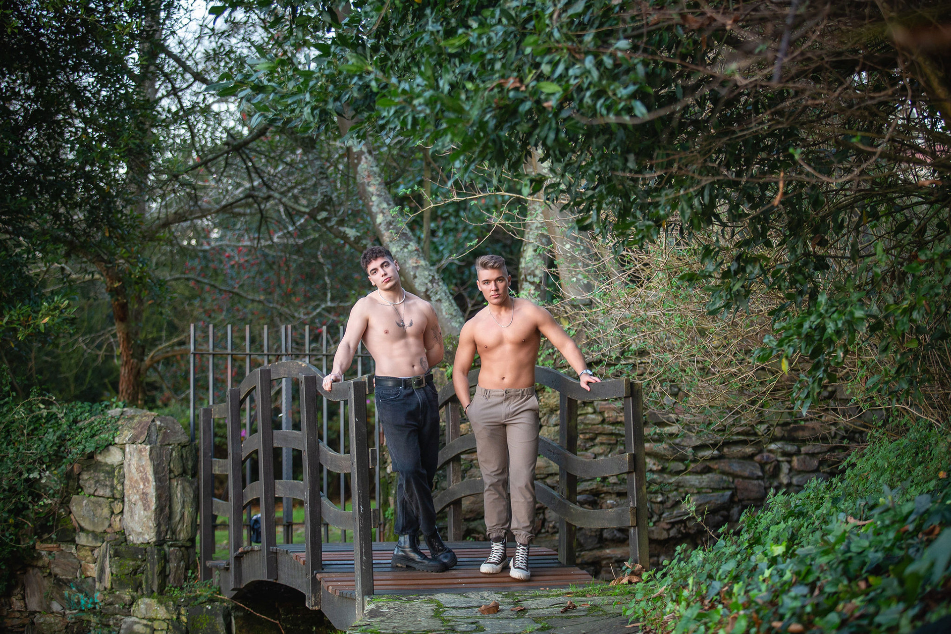 Fue una sesión marcada por la risa y la complicidad. Lejos de las poses rígidas, buscamos capturar la cercanía y la espontaneidad de Ismael. Corríamos entre los árboles, lanzábamos hojas al aire y aprovechábamos cada rincón del parque Ibarrola. El contraste era fundamental: la textura rústica de un tronco contra la fina lana de su jersey, la vitalidad de su juventud contra la madurez serena del paisaje. El resultado fue una galería de imágenes que respiraban belleza auténtica, donde la elegancia clásica y la diversión moderna se entrelazaban tan armoniosamente como los colores del otoño gallego.